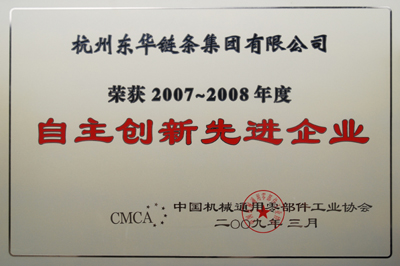 鑒于東華鏈條集團在國內鏈條領域中不斷自主創新,填補了多項國內空白,為我國的鏈條事業作出了杰出貢獻。日前,中國機械通用零部件工業協會授予東華鏈條集團“2007-2008年度自主創新先進企業”榮譽稱號。