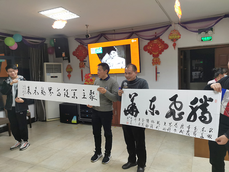 晚餐期間,通訊員現(xiàn)場(chǎng)進(jìn)行了書(shū)法創(chuàng)作、詩(shī)歌朗誦、笛子獨(dú)奏、獨(dú)唱合唱等文藝表演,展示了通訊員多才多藝的一面。