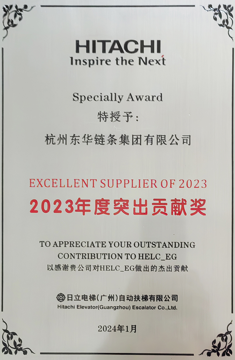 日立電梯(廣州)自動(dòng)扶梯有限公司是東華的重點(diǎn)配套主機(jī)客戶,其配套產(chǎn)品涵蓋商用梯、公交梯,雙方在多年的合作中已建立了良好的合作基礎(chǔ)。2023年,扶梯工程鏈?zhǔn)聵I(yè)部積極實(shí)施細(xì)分市場(chǎng)冠軍戰(zhàn)略,堅(jiān)持專業(yè)化、系統(tǒng)化、高端化和高質(zhì)量發(fā)展的定位,不斷開(kāi)發(fā)和滿足日立電梯的需求,積極走訪市場(chǎng),在產(chǎn)品制造過(guò)程中嚴(yán)控工藝、提升交付率,在產(chǎn)品質(zhì)量上更是精益求精,全方位提升服務(wù)。此次東華獲得2023年度突出貢獻(xiàn)獎(jiǎng)和戰(zhàn)略合作伙伴獎(jiǎng)是日立電梯(廣州)自動(dòng)扶梯有限公司對(duì)東華扶梯鏈產(chǎn)品質(zhì)量的高度肯定,也讓我們對(duì)2024年服務(wù)好客戶信心倍增。