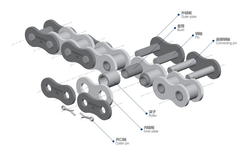 ● 短節距精密滾子鏈符合ISO、ASME/ANSI、DIN、JIS等標準,主要有A系列短節距精密滾子鏈、B系列短節距精密滾子鏈、重載系列滾子鏈等系列;