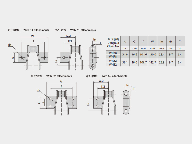 ● 工程用焊接結構彎板鏈按照ASME B29.16M《鋼制焊接工程鏈、附件和鏈輪齒形》和ISO 6972《焊接結構工程用彎板鏈、附件和鏈輪》設計和制造,有多種附件可供選擇,也可以按照用戶需求進行定制開發(fā)。