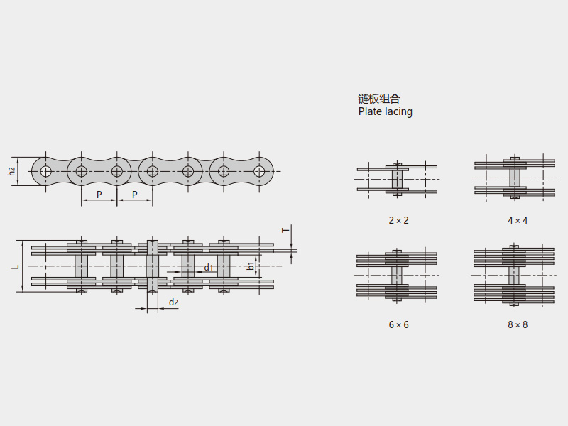 ● 曳引鏈除板式鏈外,還包括停車庫鏈條、多板銷軸鏈、無滾子提升鏈等鏈條,其中多板銷軸鏈符合DIN標準,無滾子提升鏈在尺寸上基本與標準鏈相同。